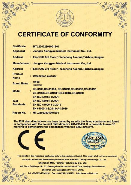 CHINA Jiangsu Xiangyou Medical Instrument Co., Ltd. Certificações